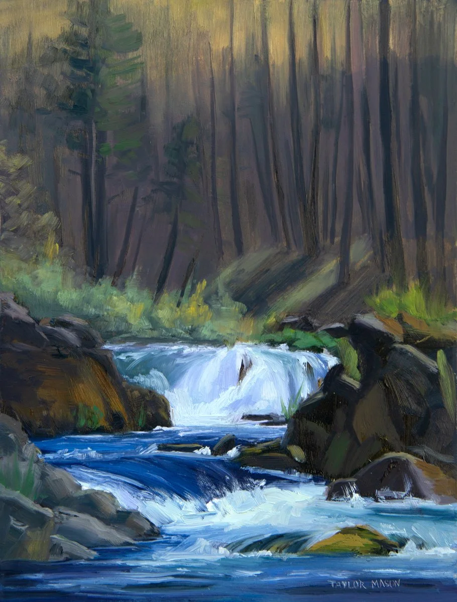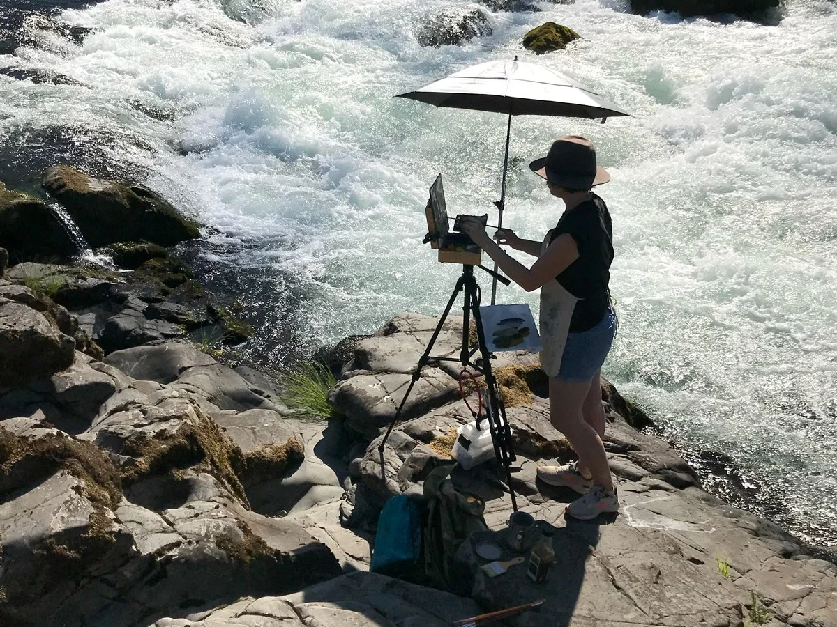 Fish jumped out of the water. The sun beat down but the river and umbrella kept me cool enough. I waited all summer for this week to paint back in my hometown for the Umpqua Plein Air event. Surrounded by nature, family and painting. It was a joy.